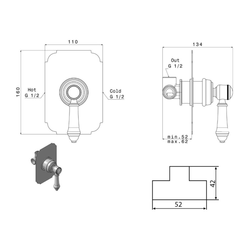 - Dimensiuni (mm): L=110; h=160; ad=134+52;