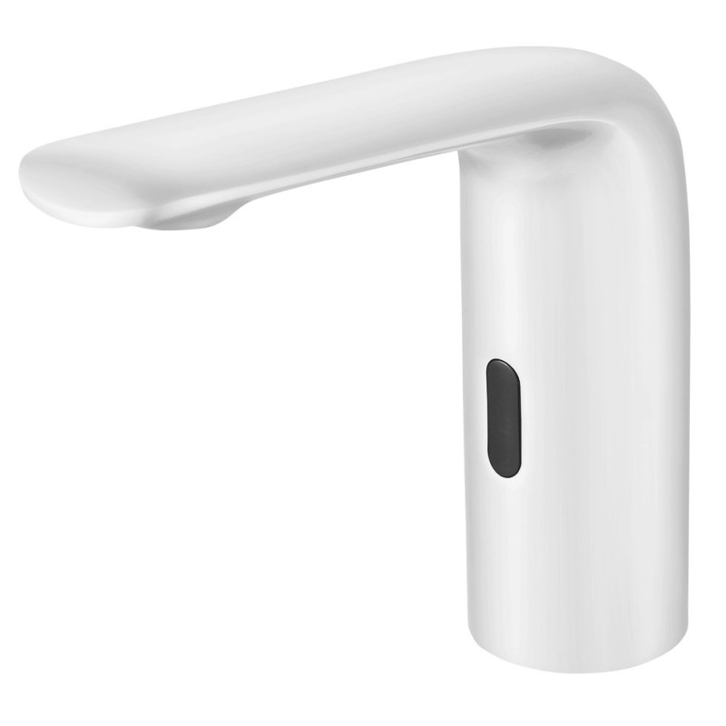 Baterie pentru lavoar cu senzor ce iese in evidenta datorita designului cu trasaturi originale si a finisajului alb impresionant, aplicat cu atentie la detalii. Reprezinta o opțiune modernă și sofisticată pentru accesorizarea unei bai stilizate si luminoase. Aceasta oferă atât un aspect elegant, cât și o funcționalitate superioară datorită tehnologiei cu senzor. Permite instalarea pe lavoar sau pe blat atunci cand exista un lavoar instalat sub nivelul blatului. Este ideală în locuri unde igiena este esențială, precum băi de toaletă publică.