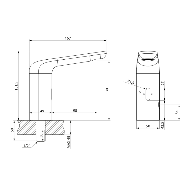 - Dimensiuni (mm): L=167; h=151; diametru corp=49