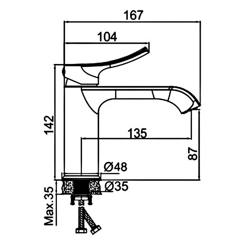 - Dimensiuni (mm): h total=142; h perlator=87; L=135