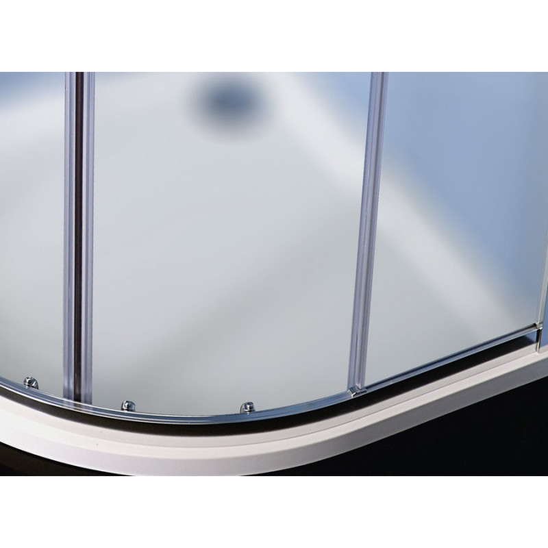 Fabricata din panouri din sticla securizata semitransparenta cu grosimea de 6 mm si profile din aluminiu lustruite, avand dimensiunile de L=900, l=900, h=1900 (mm) si o deschidere de 540 (mm). Constituita din cele mai bune componente, asigura aspect remarcabil, rezistenta maxima si o expperienta placuta in utilizare.
