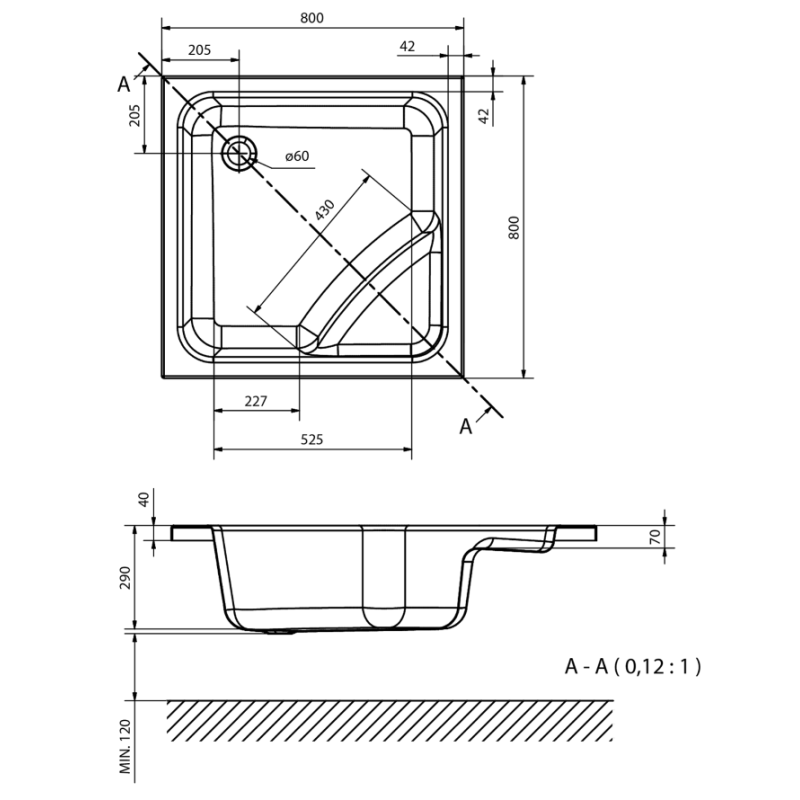 - Dimensiuni (mm): L=800; l=800; h=290