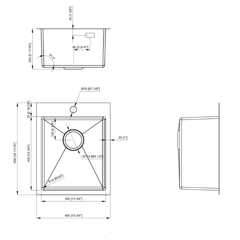 - Dimensiuni (mm): L=400; l=500; h=220; cuva=350 x 400