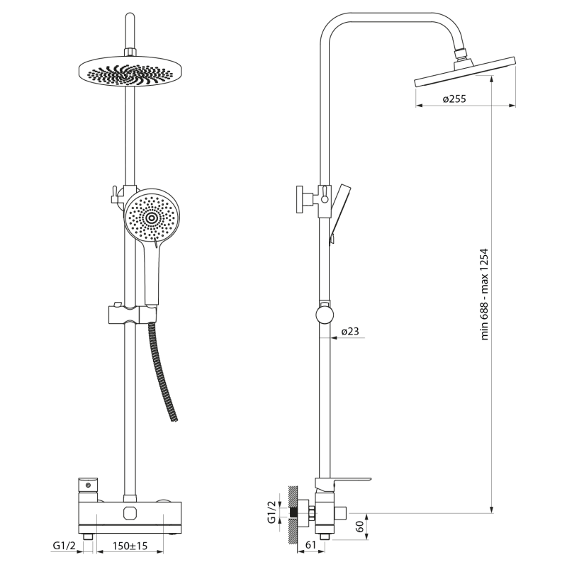 - Dimensiuni (mm): h reglabila 688-1254; diametru dispersor fix 250