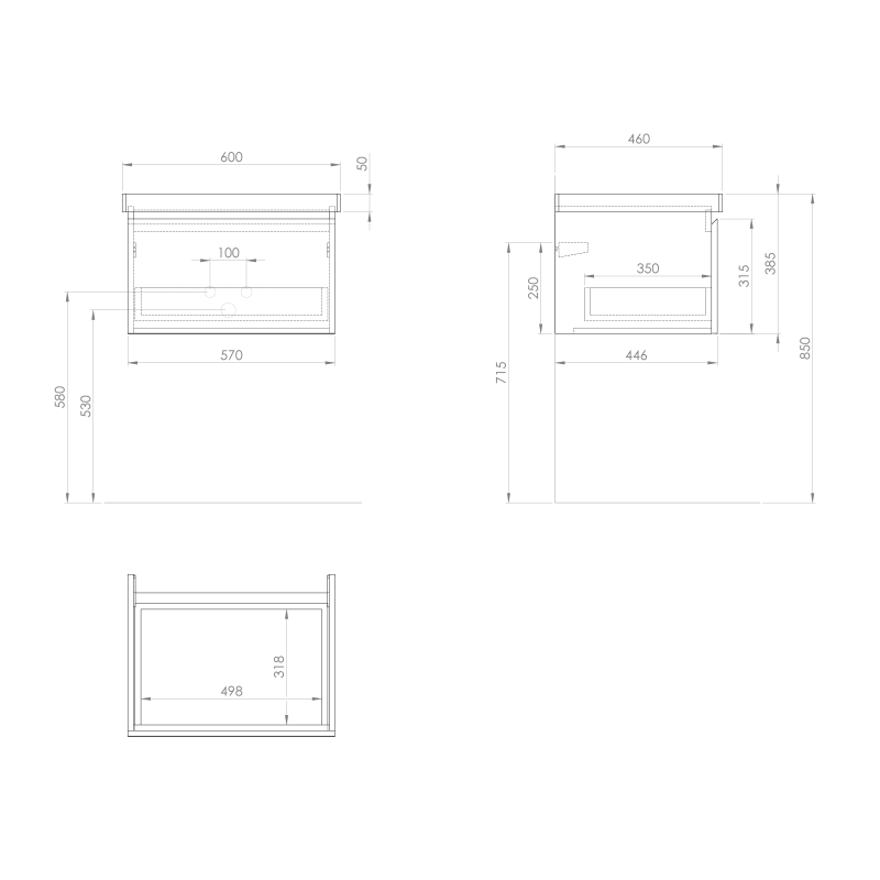 Dulap baie suspendat cu sertar pt lavoar 60 x 46 cm alb Aqualine Altair