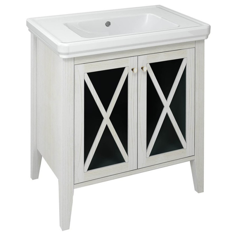 Dulap lavoar baie lemn masiv alb antichizat Sapho Cross 75