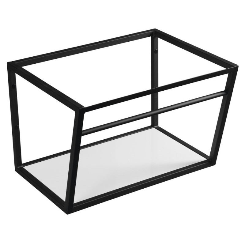 Dulap cadru lavoar in stil industrial fabricat din otel si vopsit in negru dupa tehnologii de ultima generatie capabile sa asigure produsului mentinerea culorii, rezistenta maxima si durabilitate. Este prevazut in partea frontala cu o bara orizontala portprosop iar la baza o polita din MDF de culoare alba.