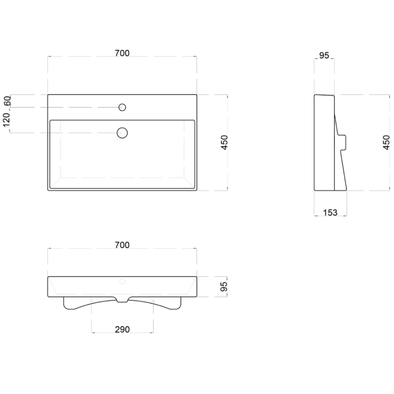 - Dimensiuni (mm): L=700; l=460; h=95