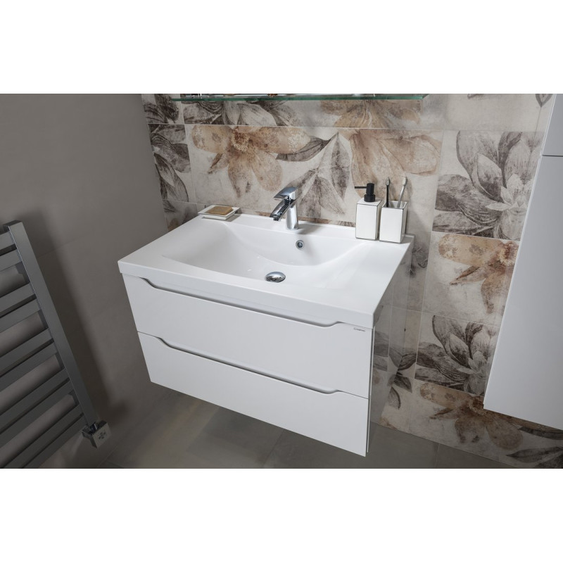Idee amenajare baie utilizand mobilier baie din colectia Wave cu lavoar Luciola de 80 cm