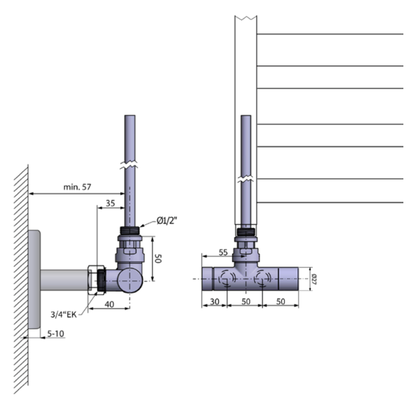 - Distanta intre racorduri la perete: 50 mm