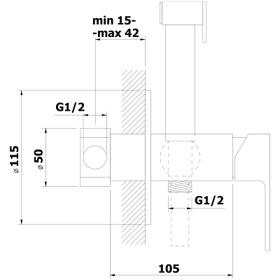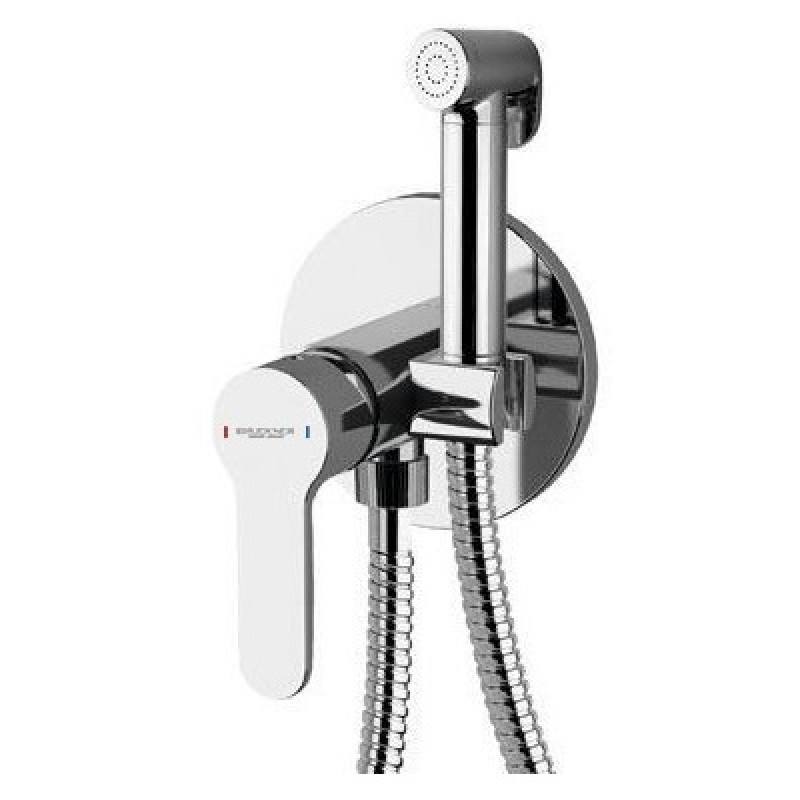 Set dus pentru bideu alcatuit din: baterie incastrabila cu maneta monocomanda, suport de perete, dispersor mobil si furtun.