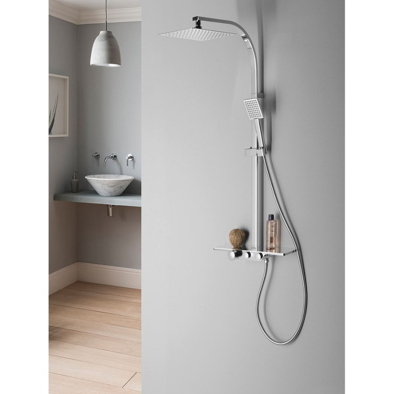 Prevazuta cu baterie cu termostat si polita pe care se pot amplasa obiectele necesare in dus. Prezinta elemente ce asigura compatibilitate in incaperile de baie contemporane.
