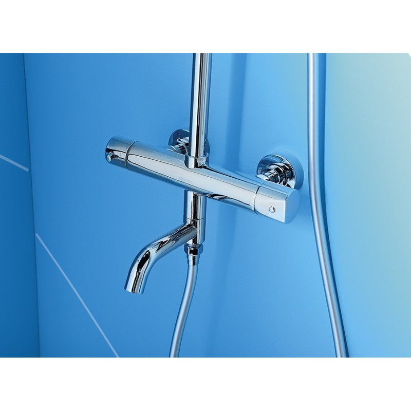 - coloana telescopica (reglabila pe inaltime)- baterie cu sistem termostat High-Tech Termo cu pipa incorporata cu rol dublu, de furnizare apa si comutare pipa/dus