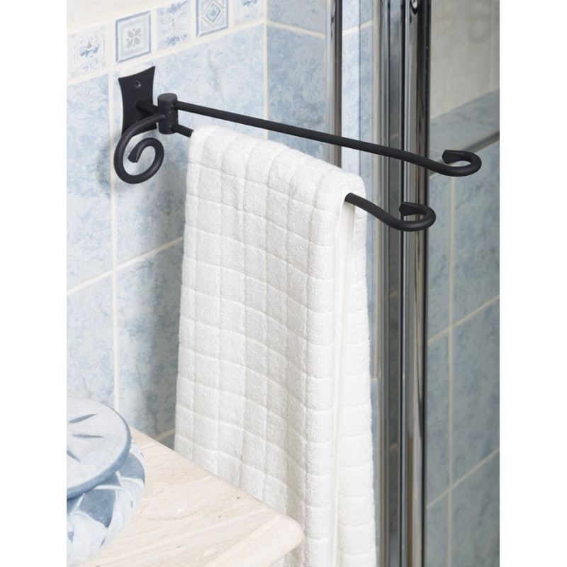 Adaugă un accent industrial sau tradițional băii tale cu acest suport de prosoape din oțel negru. Cu elemente simple, rotunjite la capete, este alegerea perfectă pentru un decor stilizat și funcțional.