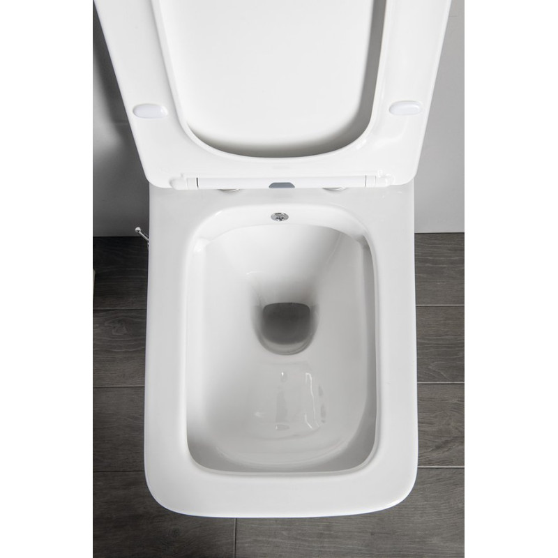 - Tehnologie Rimless: Jet de apa ce porneste orizontal si reuseste sa asigure o curatare eficienta fara sa fie necesara marginea interioara a vasului. Totodata permite mentinerea cu usurinta a igienei